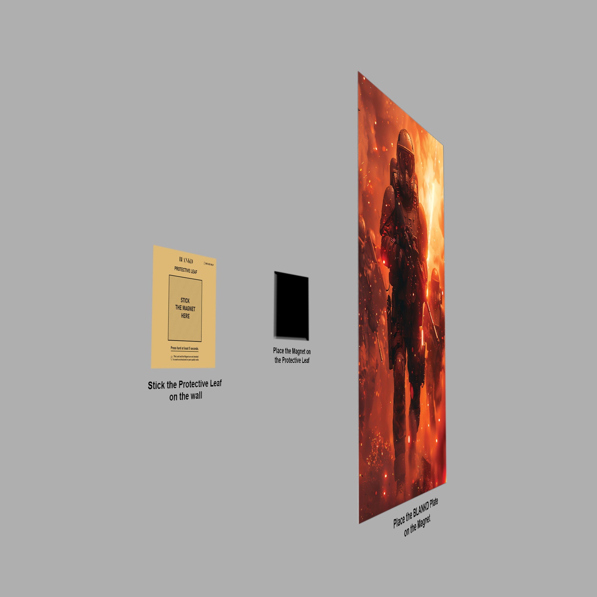 Say goodbye to messy adhesives and frustrating installations. With just three simple steps, our innovative magnetic mounting system makes decorating a breeze, allowing even your elderly grandpa to effortlessly reposition or swap out your artwork whenever inspiration strikes. Experience hassle-free decorating and unleash your creativity!
